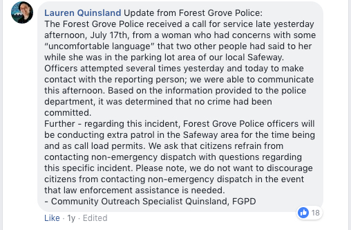 posted to a very popular Facebook group that targeted an Oregon